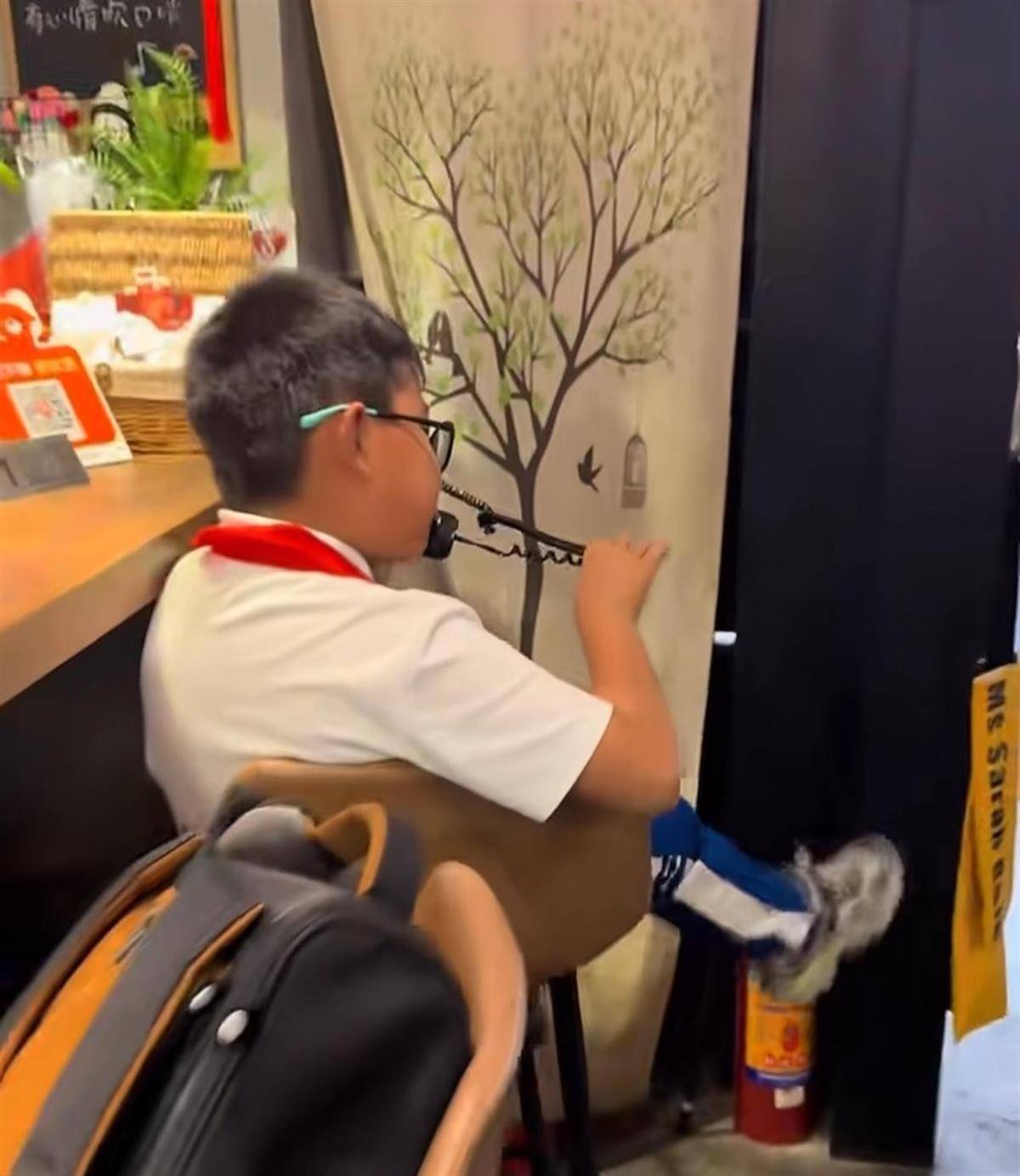 这家藏在广东省湛江市赤坎区寸金街道寸宝路的小店,营业时间为每天10时至23时,此前鲜为外地人所知。2015年咖啡馆开业时,店内就配备了固定电话,起初并不是专门为学生设置的。2016年,隔壁学校增设小学部和幼儿园部后,情况发生了变化——由于学校实行封闭式管理,禁止学生携带手机、电话手表等电子设备,家长们对孩子的安全十分牵挂,学生们也急需一个与家人联系的渠道。